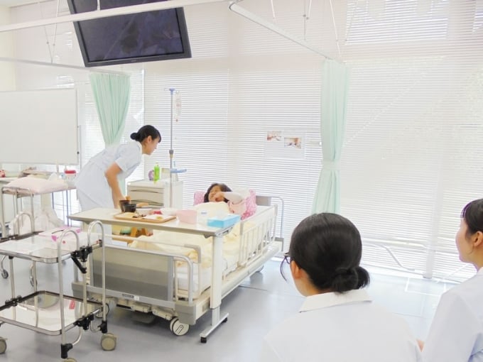 看護学部では、地域の皆さまに患者役などで演習へ参加していただく学習を導入しています。地域の方々に御協力いただくことで、学生同士の練習よりずっとリアルで臨床現場に近い状況を創り出すことができます。授業では、学生たちの生き生きとした表情が印象的で、1人1人が関わりの中でしか気づくことのできない学びを得ています。