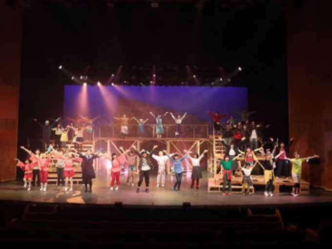 子ども文化創造表現活動の一環として、吹田市メイシアター(大阪府吹田市)と本学の教育学部の共同事業によるファミリーミュージカルを毎年3月に実施しています。