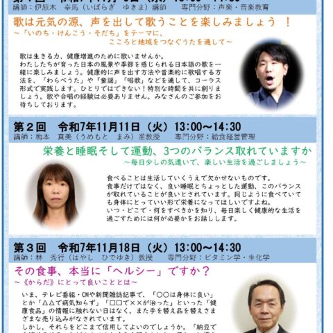 2025/10/02 生涯学習吹田市民大学-第18回千里金蘭大学キャンパス講座-を開催 2025年11月5日(水)から11月18 […]