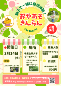 2026年3月14日(土)に千里金蘭大学にあるプレイルームにて「おやあそきんらん」を開催します。