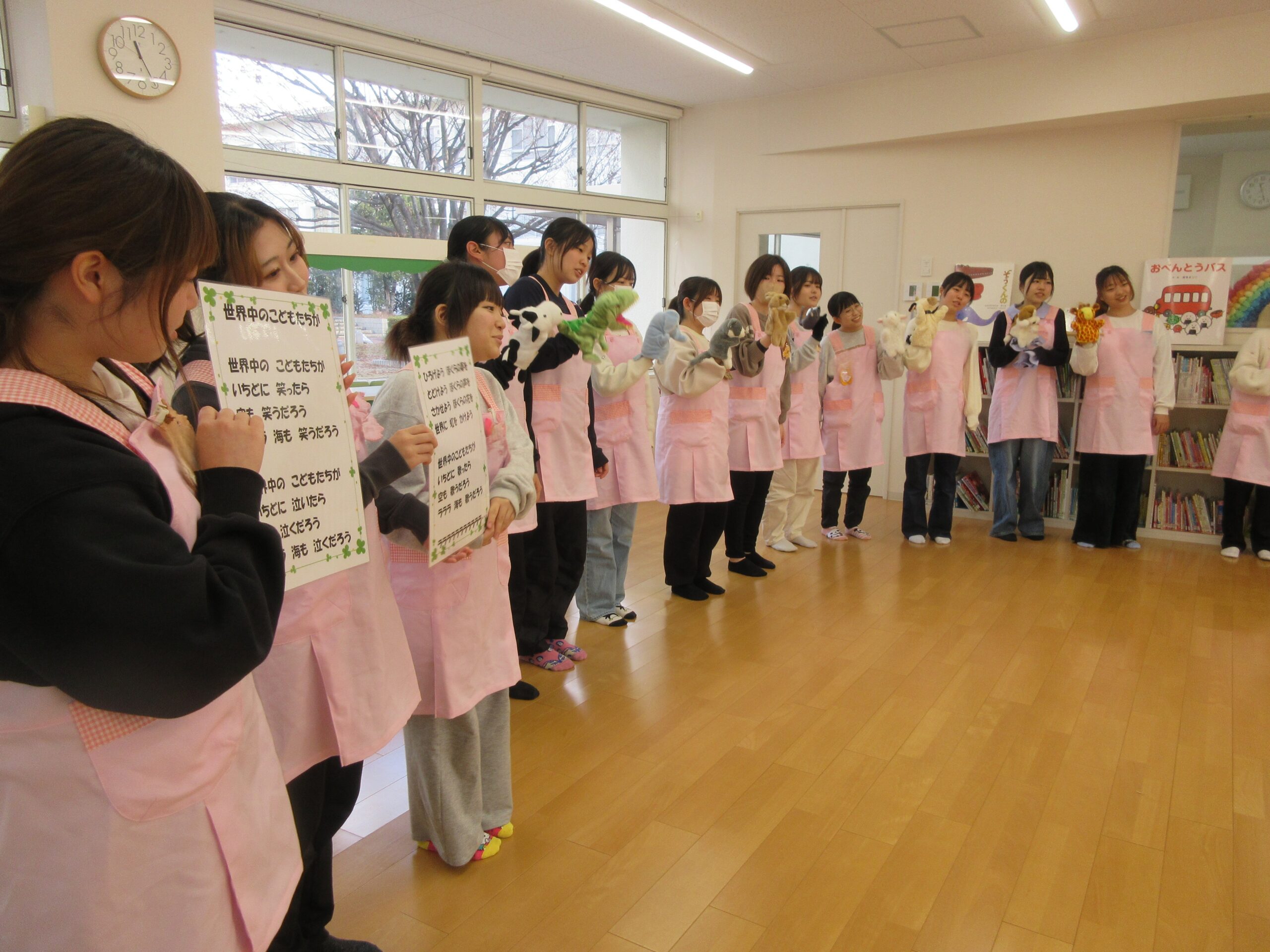 学内のプレイルームで1年間乳幼児や保護者とふれあい、子どもの成長や保護者対応を体感。保育力の基礎が身につき、2年生以降の実習をスムーズに行う土台が築かれます。