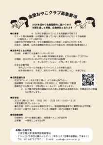 「金蘭おやこクラブ」2026年度 参加親子募集のお知らせ