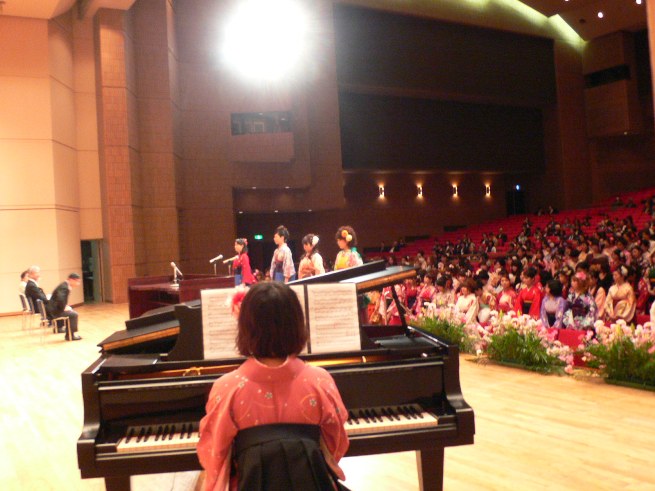 司会とピアノ伴奏も卒業生が行い、各学科の代表者が誓いを読み上げました。