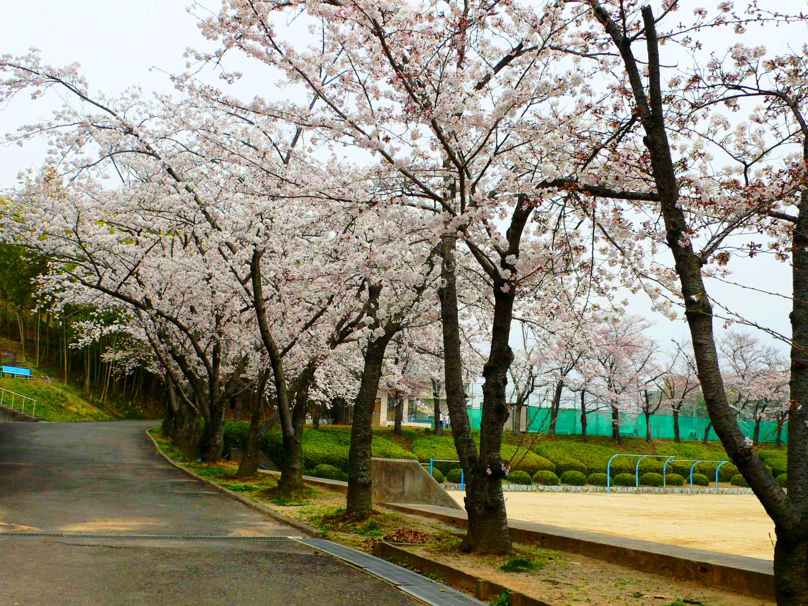 下の写真は、グランドを取り囲んで咲いている桜です。