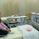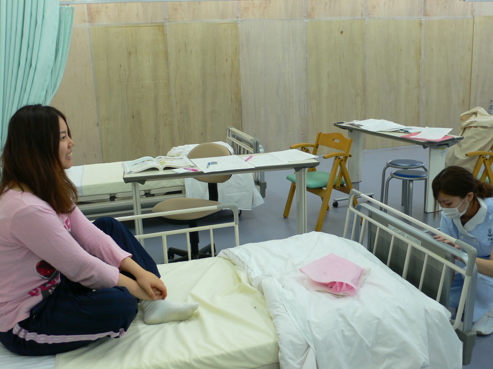 ★患者さん役の学生さん、少しドキドキしながら準備が整うのを待っています。