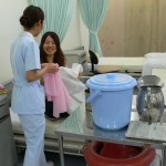 今日は看護2年生の基礎看護技術演習の授業で洗髪実習がありました。