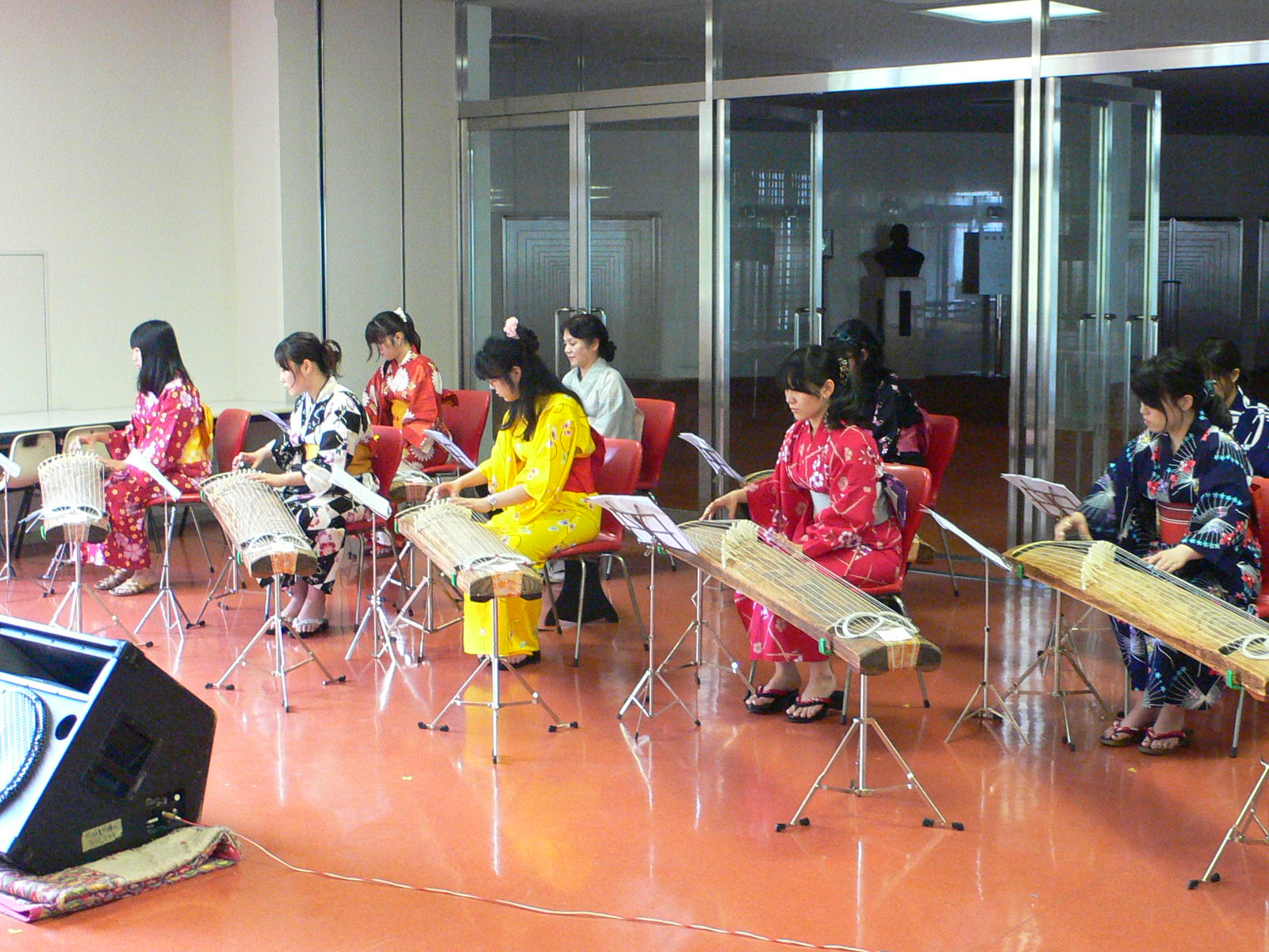 筝曲部の皆さんが浴衣に着替えて演奏しています。