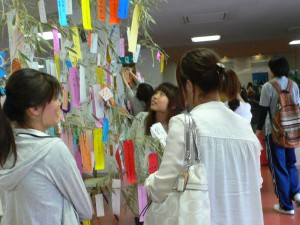 短冊に色々な願いを込めて学生たちがお願いをしていました。