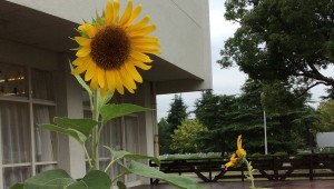 プレイルームのウッドデッキでは学生さんたちが大切に育ててきたひまわりがキレイに咲いていますよ~