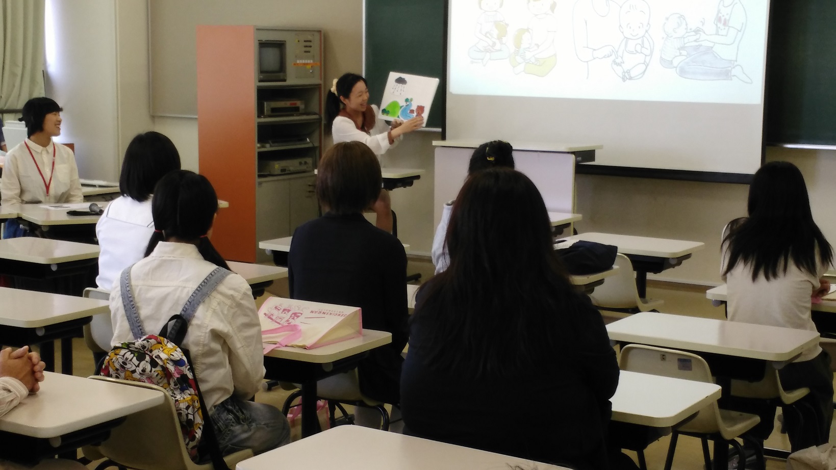 赤ちゃんのすごい力について学んだり、 実物大の赤ちゃん人形で抱っこの仕方を習ったりしました。