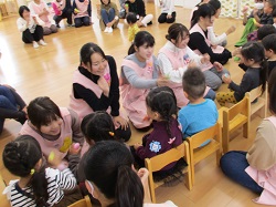 子どもの名前を呼ぶ学生の声も元気に明るく