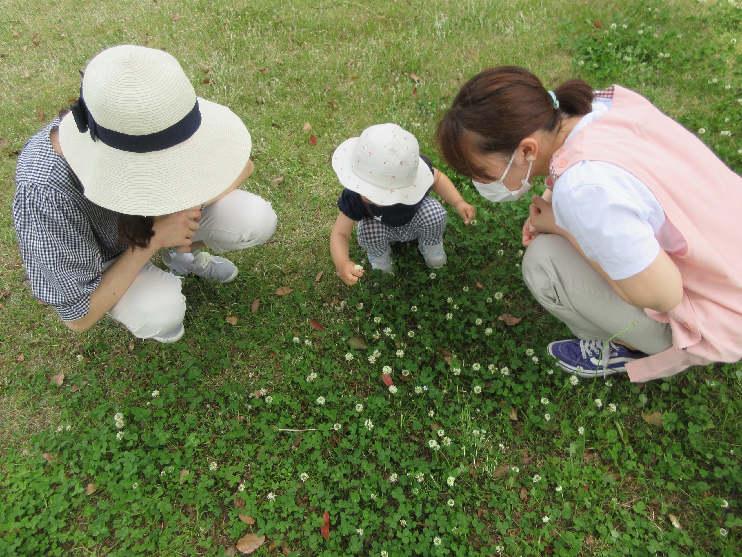保護者の方が4つ葉のクローバーを見つけて「幸せになりそう」とうれしそうでした。