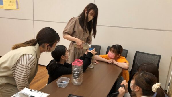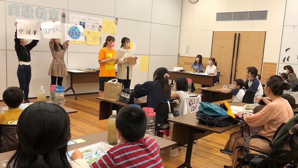 学生たちが企画し、吹田市水道部のご協力のもと、吹田市立北千里児童センターの主催行事(親子行事)として行いました。児童センターの皆さまには、ポスターの作成をはじめ、コップや天然水など様々な準備をして頂きました。誠にありがとうございます。