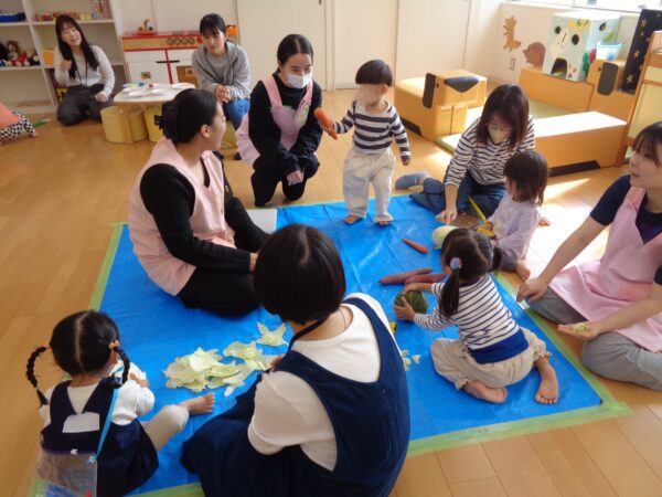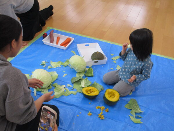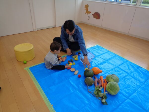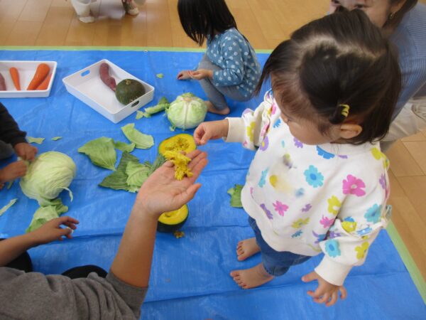 子育てひろばOh!キッズや金蘭おやこクラブの中で「お野菜であそぼう」のプチ企画がありました。