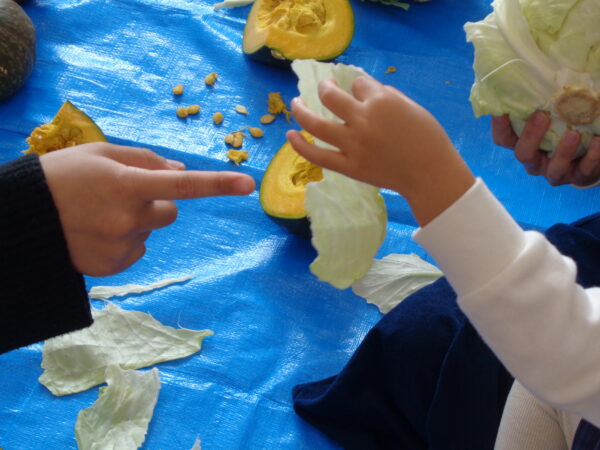 4年生の卒業研究の一環で、本物の野菜をもちこんで子どもたちの反応を観察させていただきました。