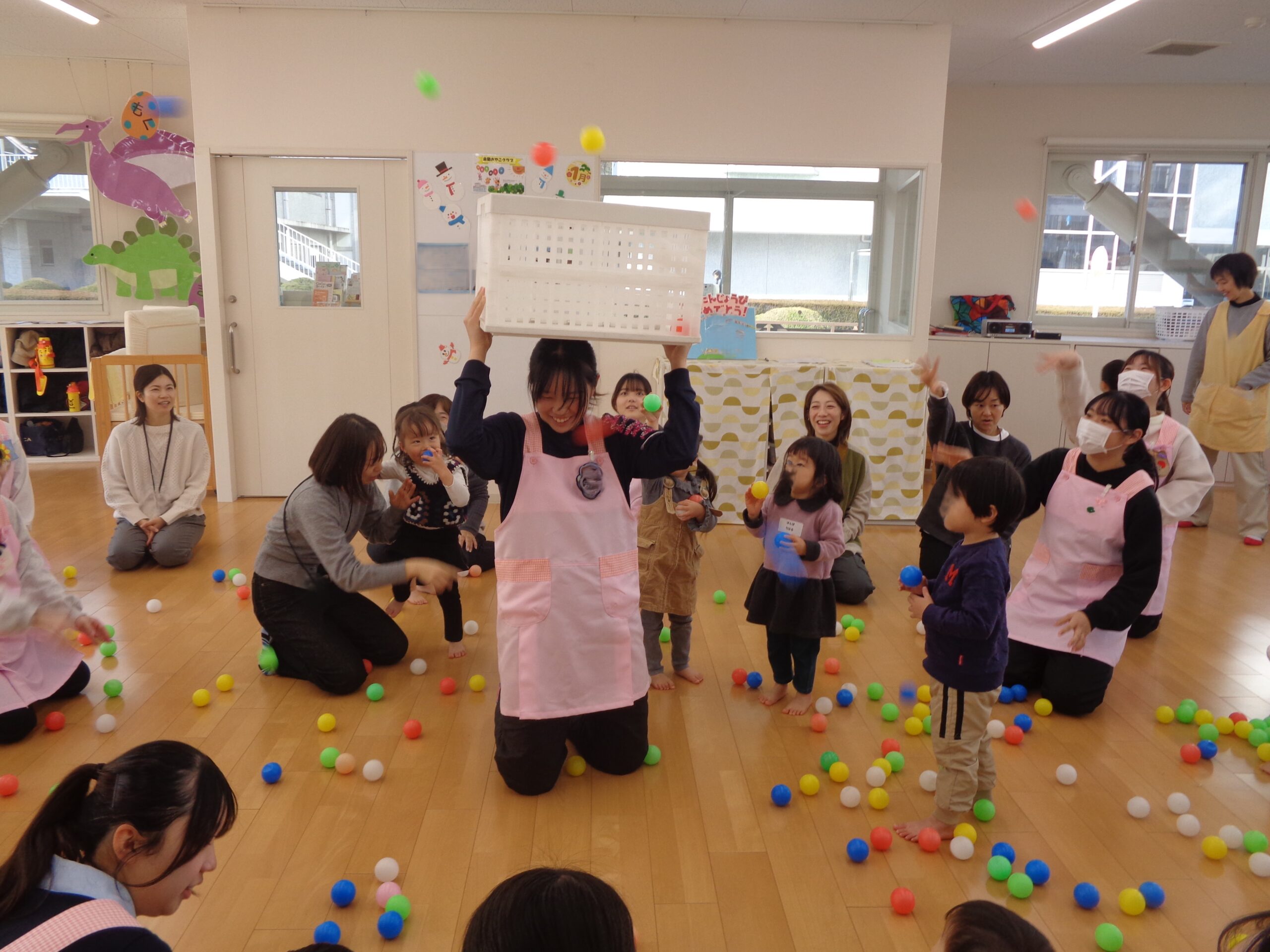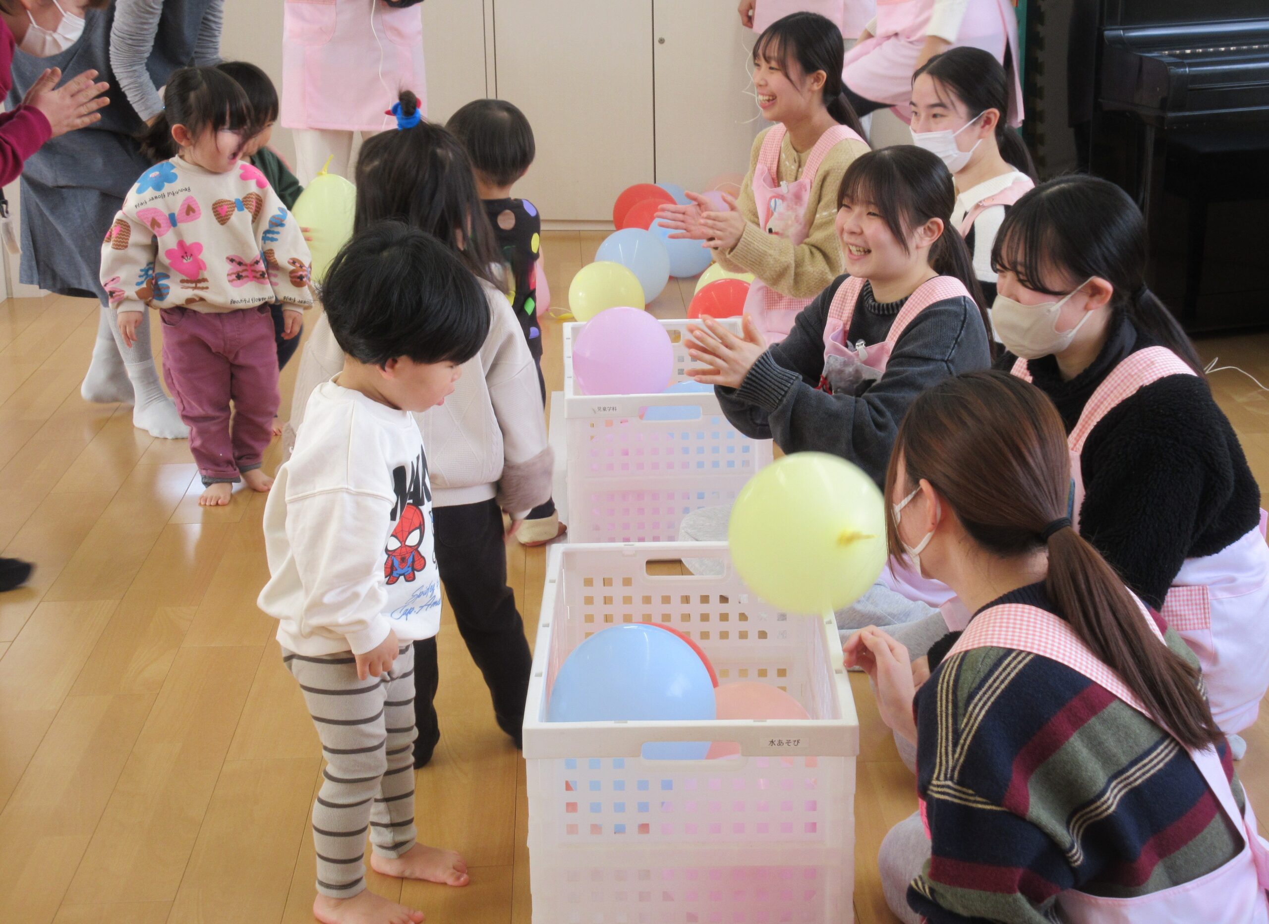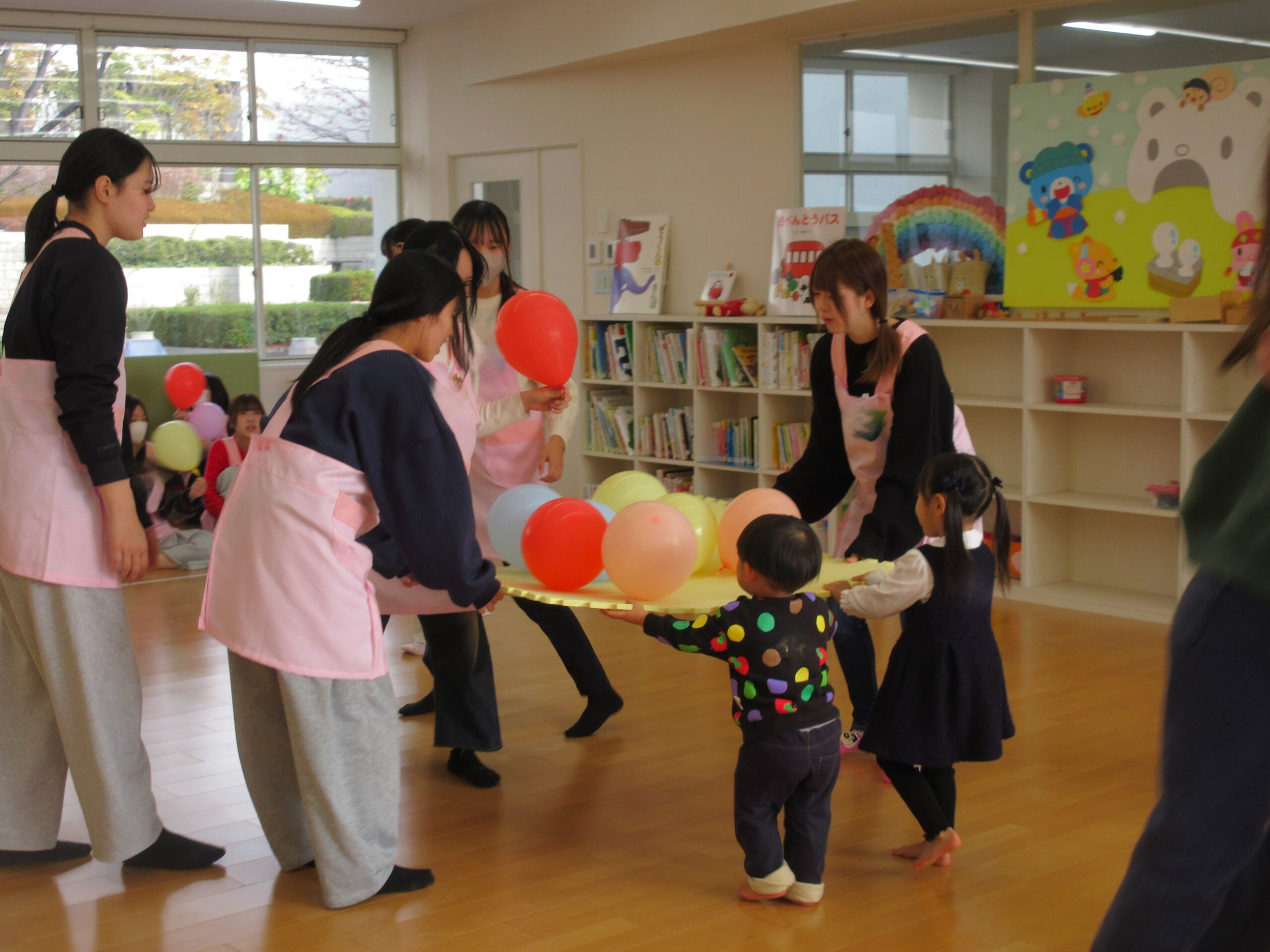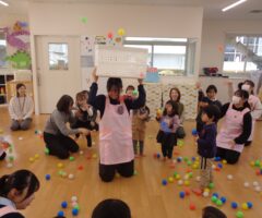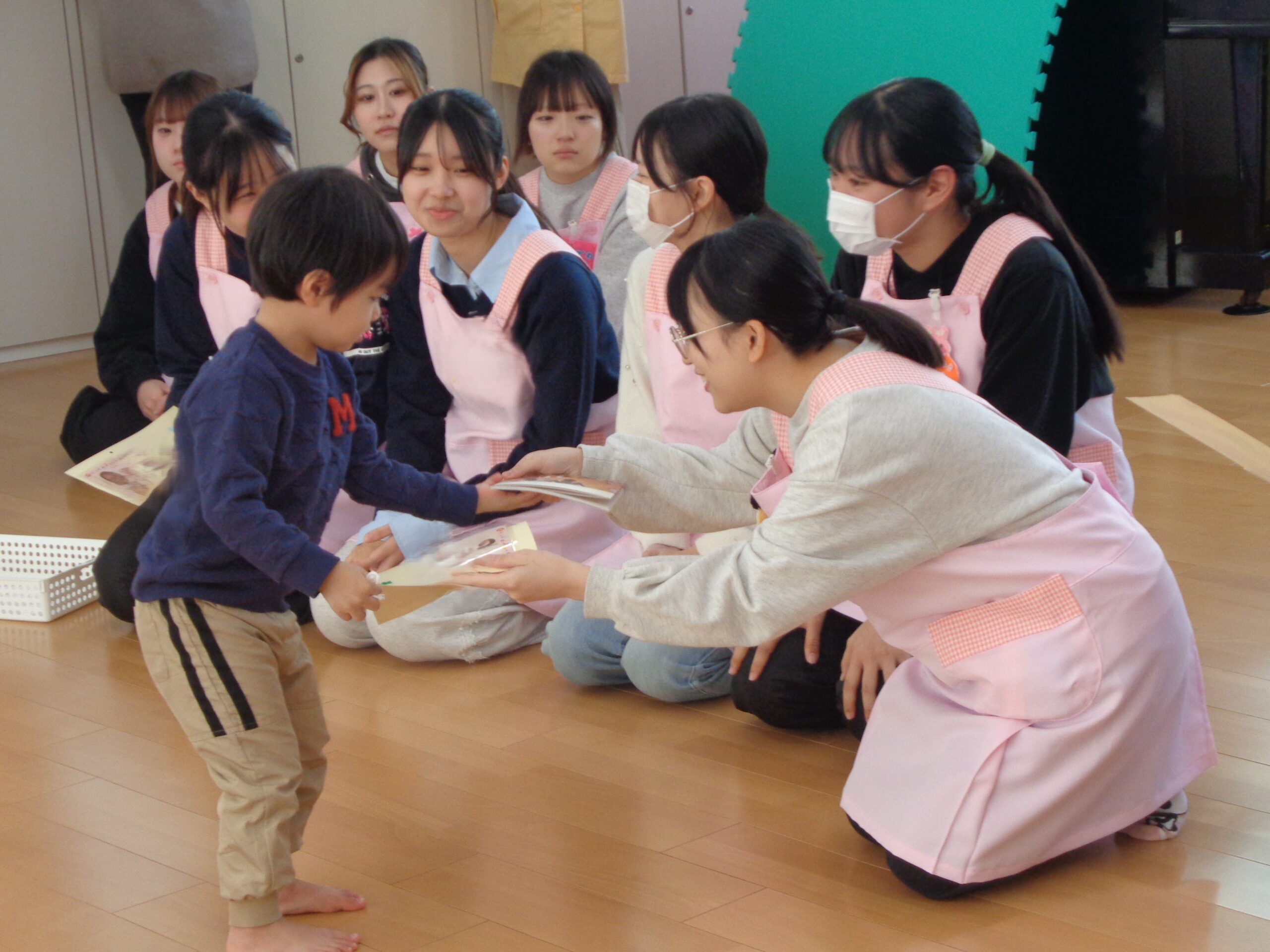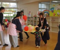 出席のお返事ができたり、みんなで絵本を見たり共同作業ができたり、これまでの1年間の成長が特に感じられる回でした。
