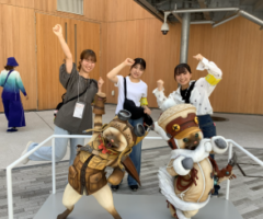 【夏】8月25日(日)大阪・関西万博で、大阪ヘルスケアパビリオン「食のDEMO LIVE」のサポートメンバーとして2,3年実践ゼミ生が参加しました。大阪府保健所栄養士さんたちと一緒に来場者への試食提供やアンケート収集を体験!多くのお客様と接しました。