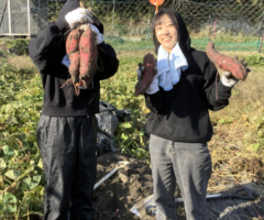 【秋】11月8日(土)1年生の基礎ゼミ研修旅行で能勢へ。自家製野菜メニューでカフェを経営されている管理栄養士さんが講師です。希望者が1人でしたので、3年生有志1名と私の3人で行ってきました。この旅行企画は今年で4回目、ついに秋の芋掘りが実現しました!お餅つきやカフェメニューの調理実習、ご近所のお米農家さんに米づくりのお話を聞いたりと、盛りだくさんの1日でした。